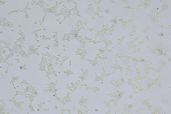 将CopEGFP基因序列克隆至慢病毒表达载体pLV3-CAG-MCS-P2A-Puro中,包装生产高滴度慢病毒颗粒,并感染人黑色素瘤细胞系A375。顺利获得荧光显微镜直接观察感染后细胞中EGFP报告基因的表达情况,评估过表达效率。